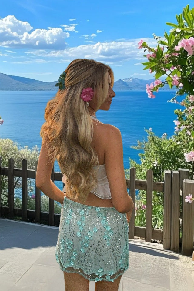 • Skirt Length: Mini • Composition: Polyester, Spandex • Details: Sequins