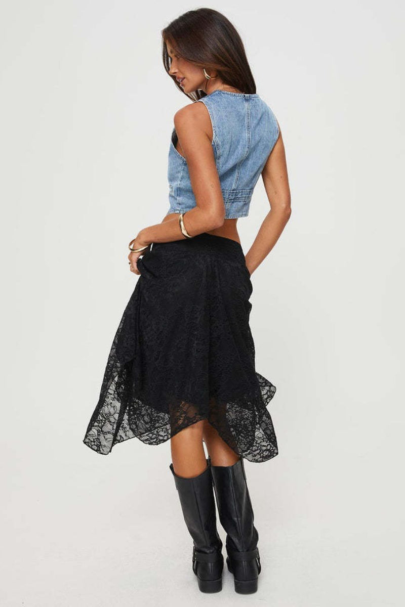 • Clothing Type: Asymmetrical Skirt • Skirt Length: Midi • Composition: Polyester, Lace, Spandex • Details: Lace