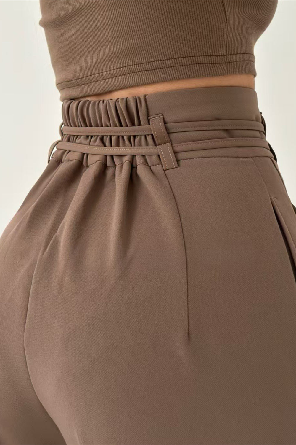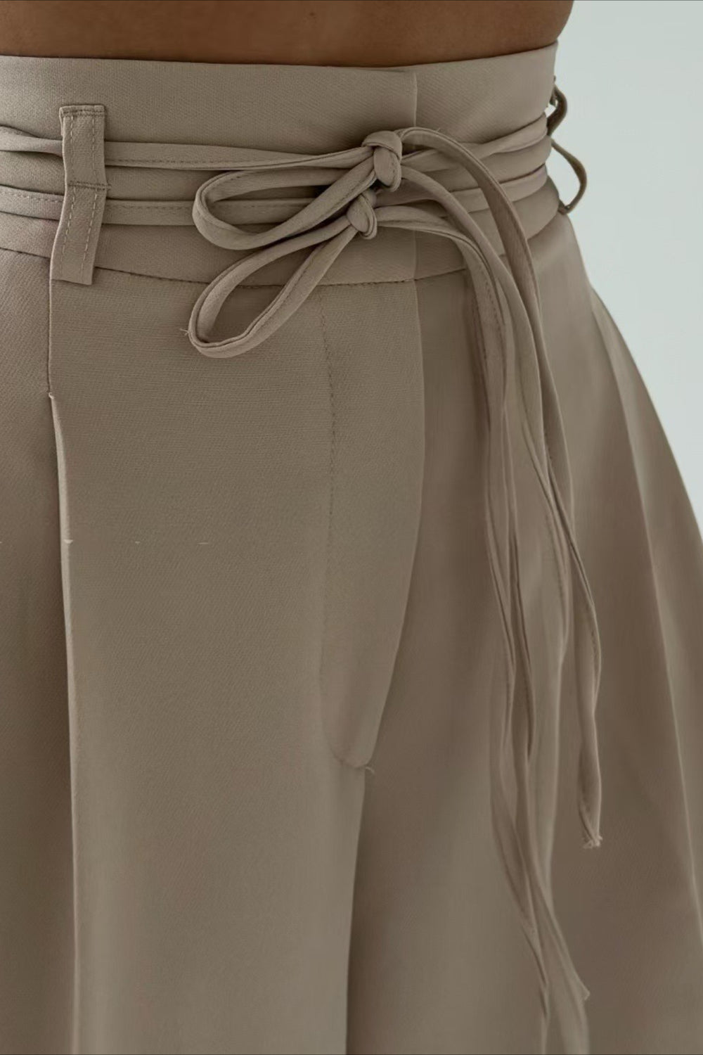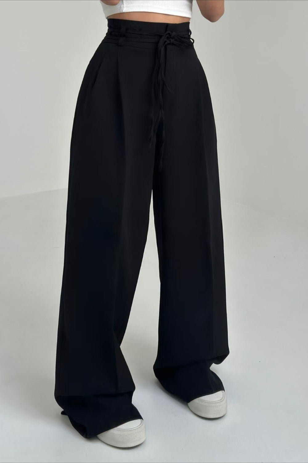 • Clothing Type: Straight Pants • Waist Type: High Waist • Details: Tie Detail • Composition: Polyester