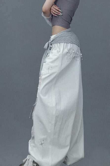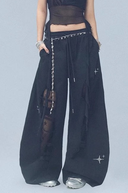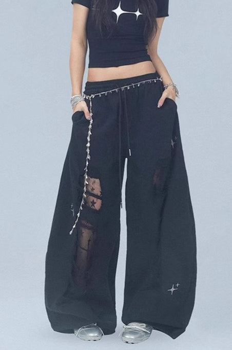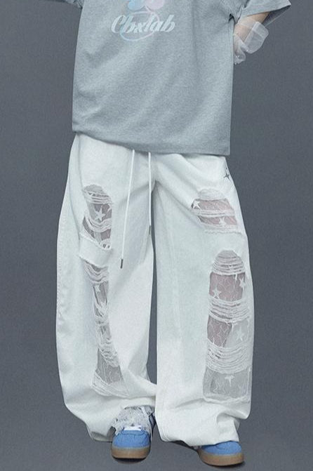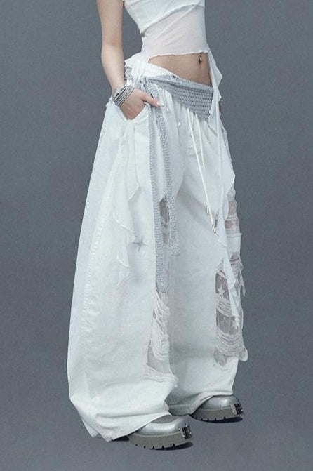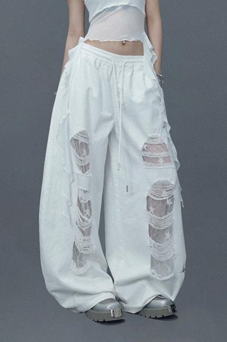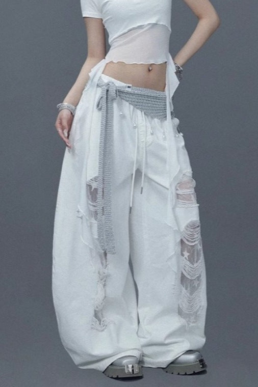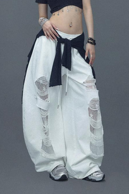• Clothing Type: Wide Leg Pants • Waist Type: Mid Waist • Details: Ripped • Composition: Cotton