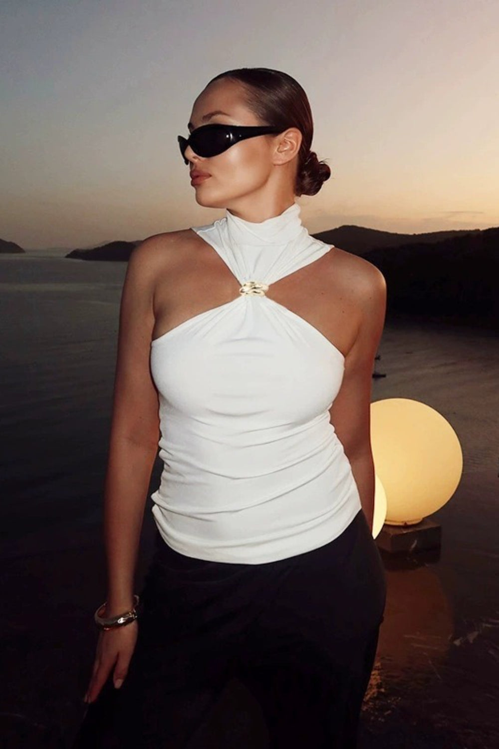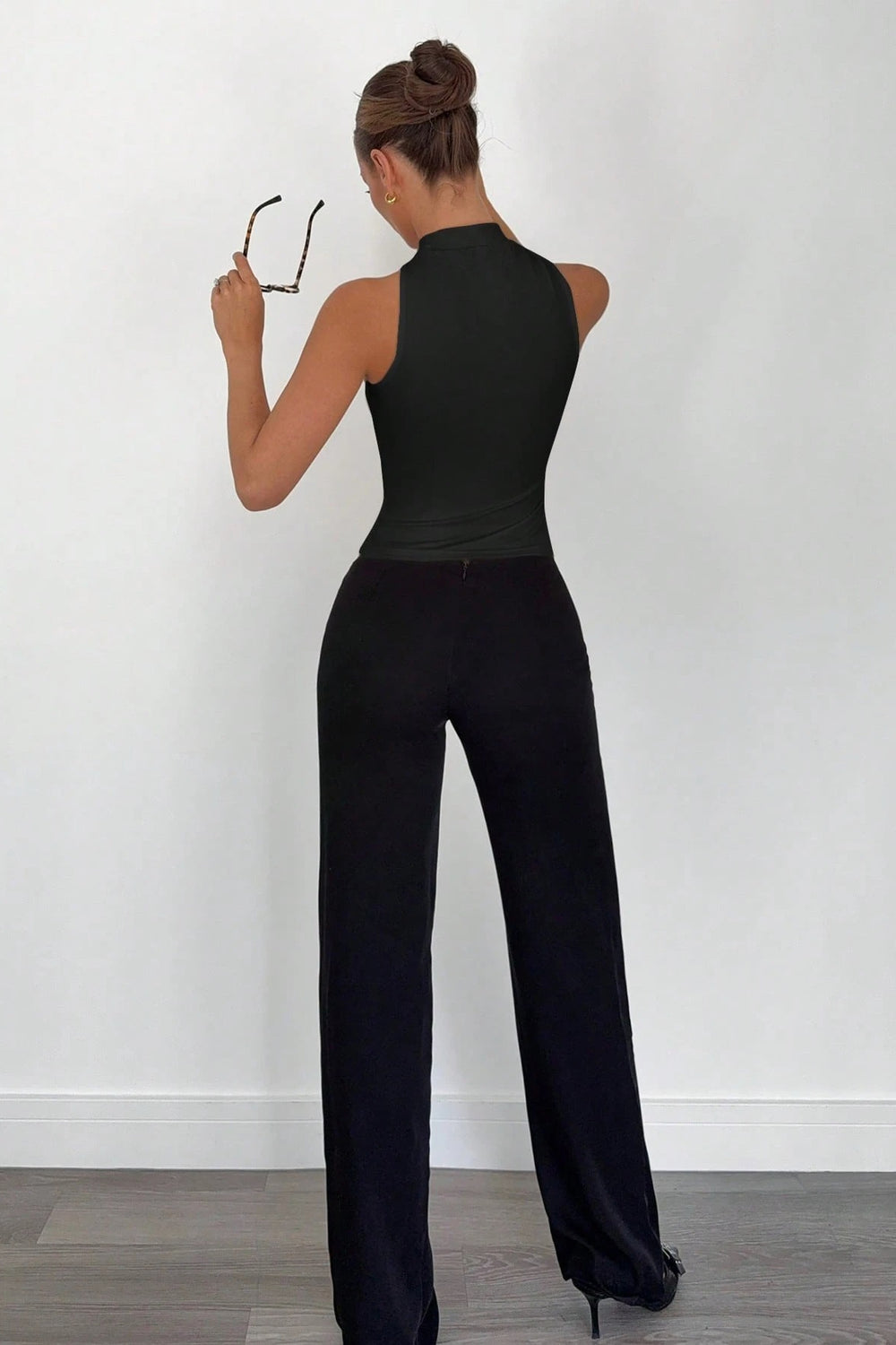 • Fit: Slim Fit • Neckline: Turtleneck Collar • Sleeve Type: Sleeveless • Details: Metallic Decoration • Composition: Polyester, Spandex