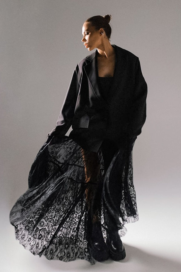 • Clothing Type: A-line Skirt • Length: Maxi • Composition: Nylon • Details: Lace • Elasticity: Slight Stretch