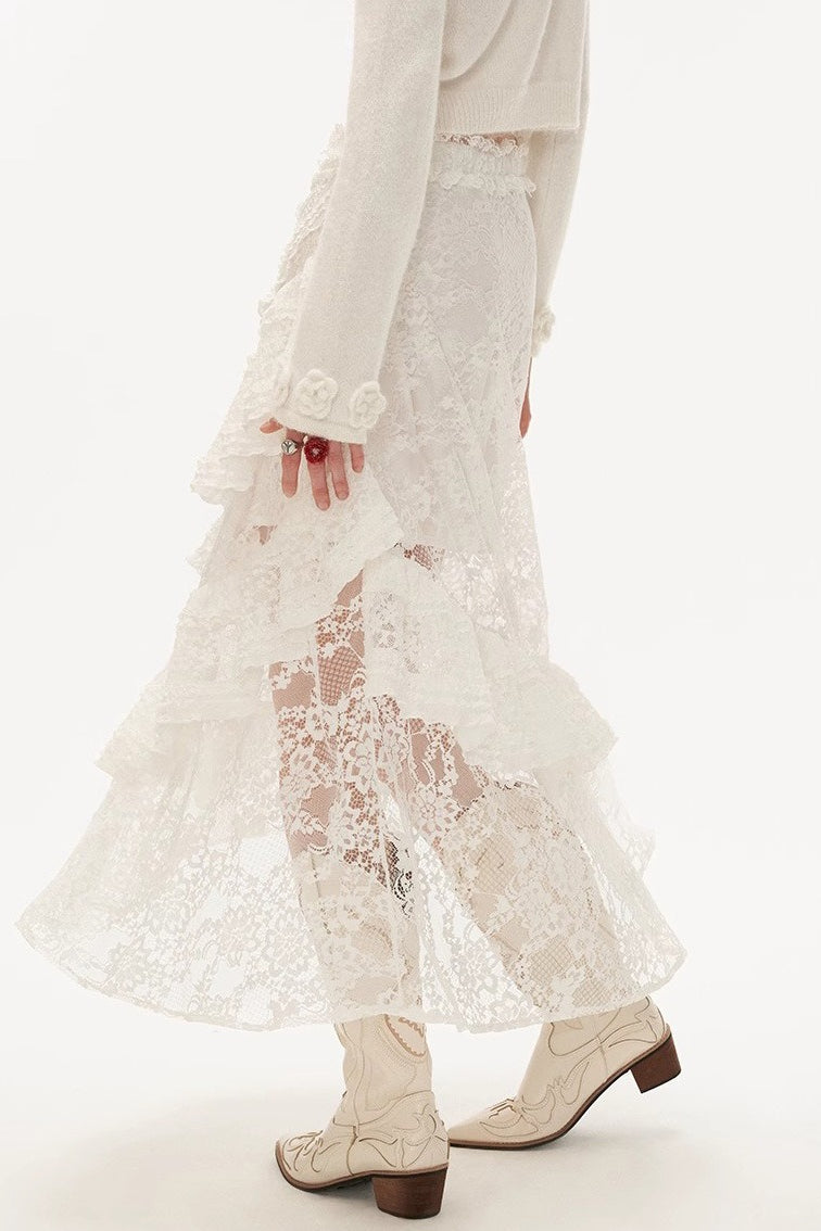 • Clothing Type: A-line Skirt • Length: Midi • Composition: Polyester • Details: Hollow-out