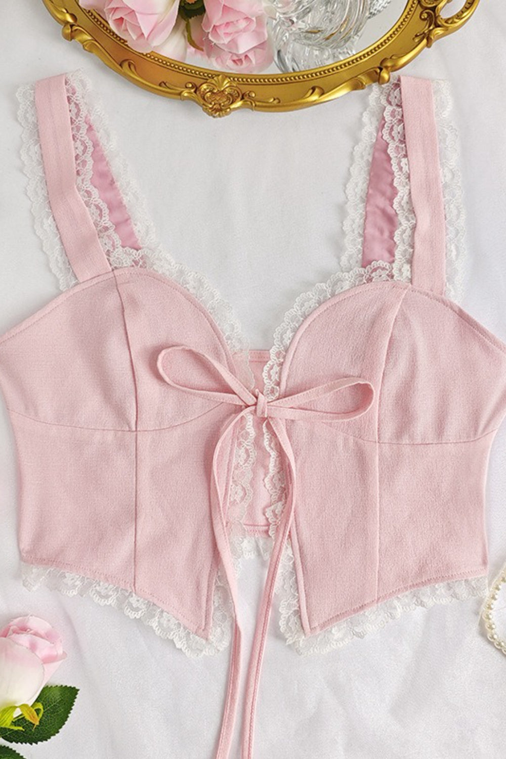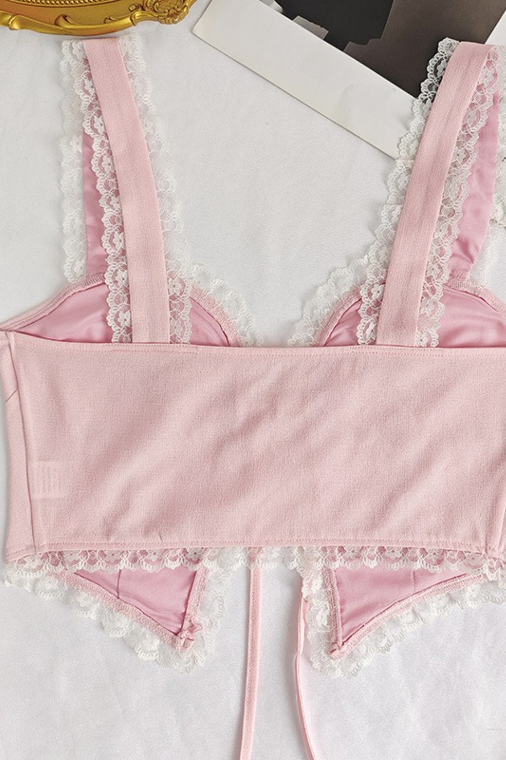 • Length: Cropped • Details: Tie Detail • Composition: Polyester • Underwire Support: Unpadded without Underwire