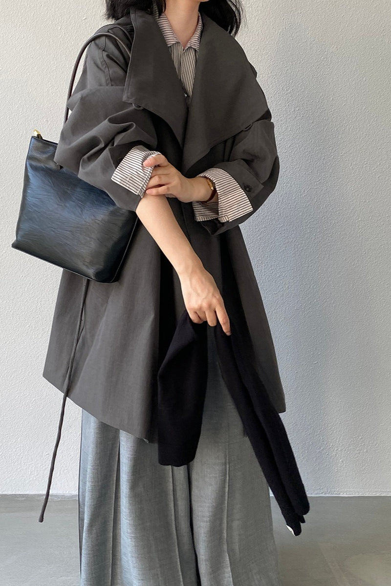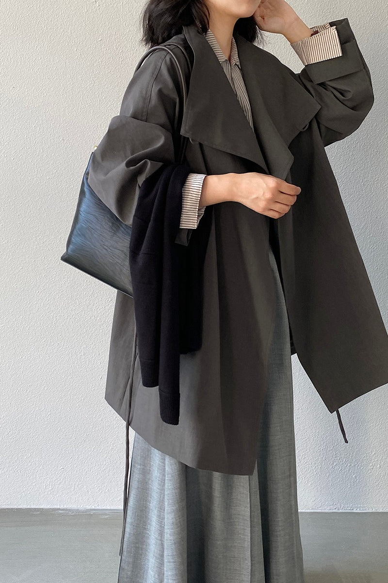 • Fit: Tailored Fit • Neckline: Lapel Collar • Sleeve Length: Long Sleeve • Sleeve Type: Regular sleeve • Details: Tie Belt • Composition: Cotton, Nylon