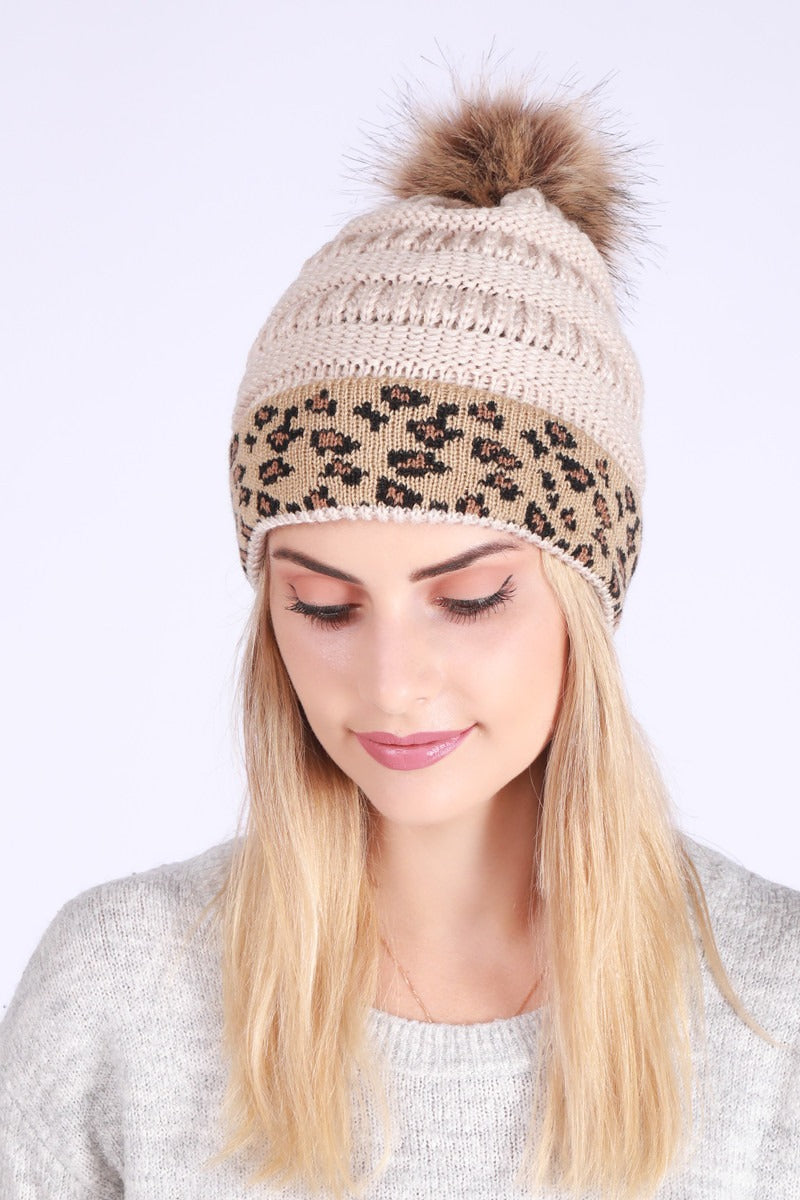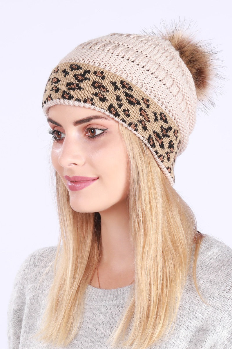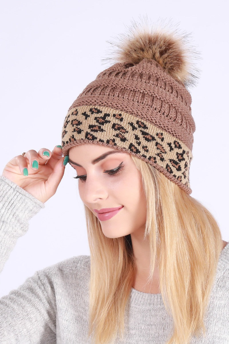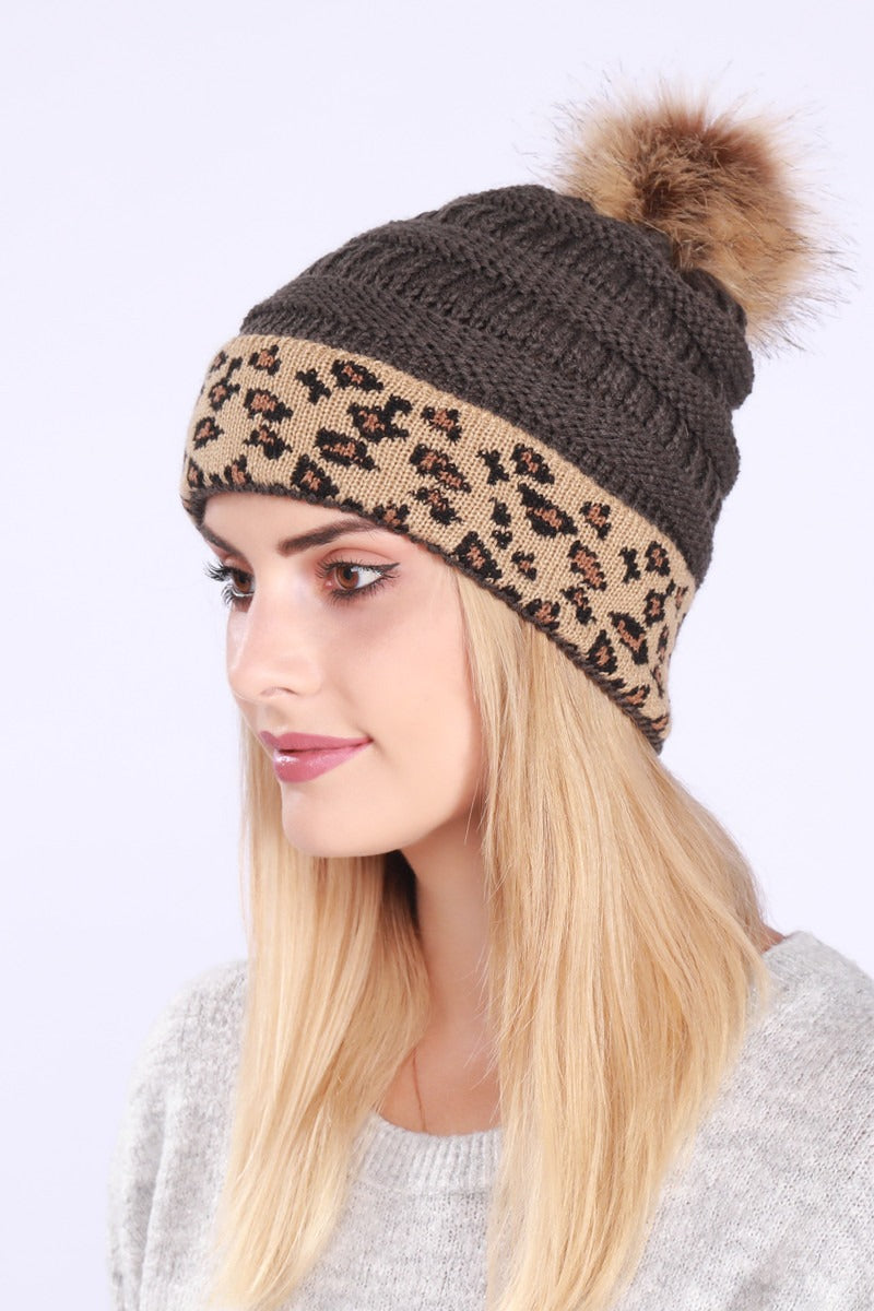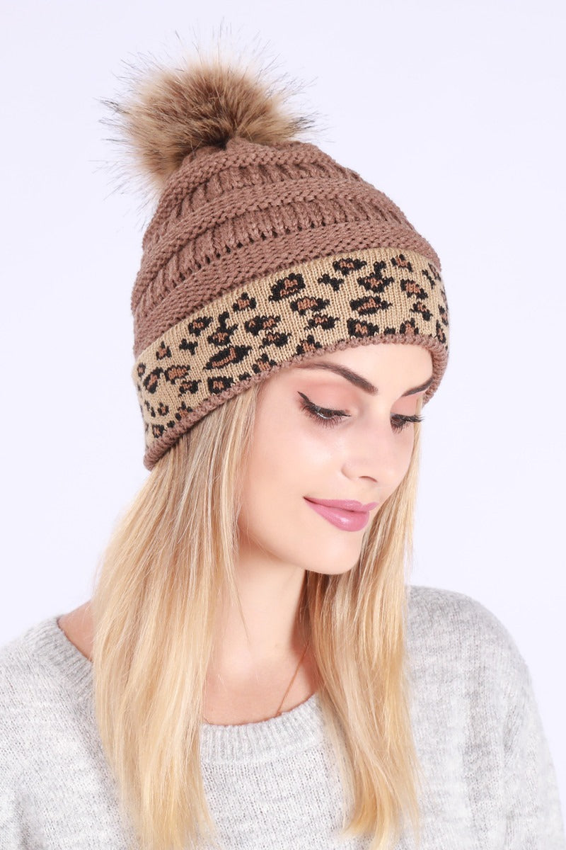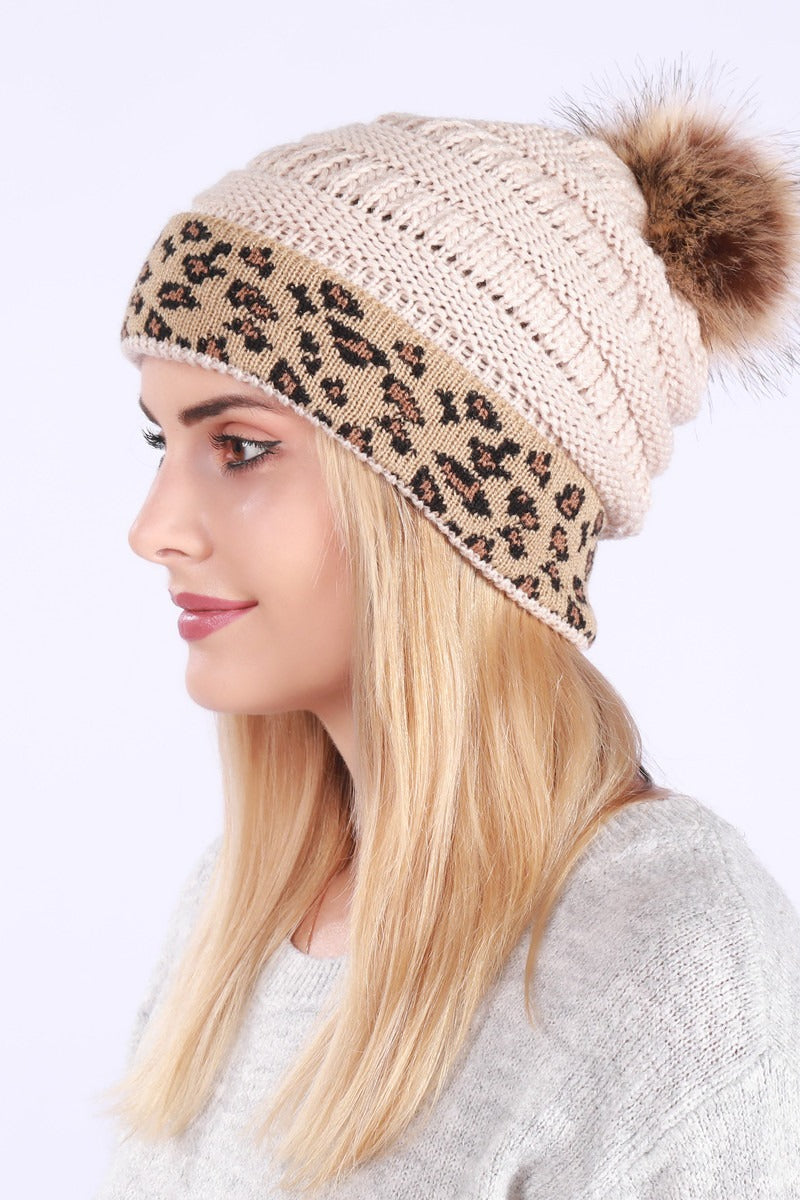 Leopard Print Slouchy Knit Beanie Hat
