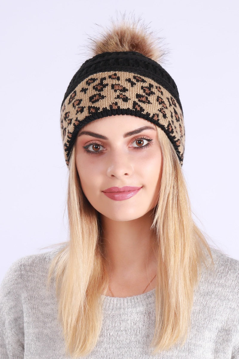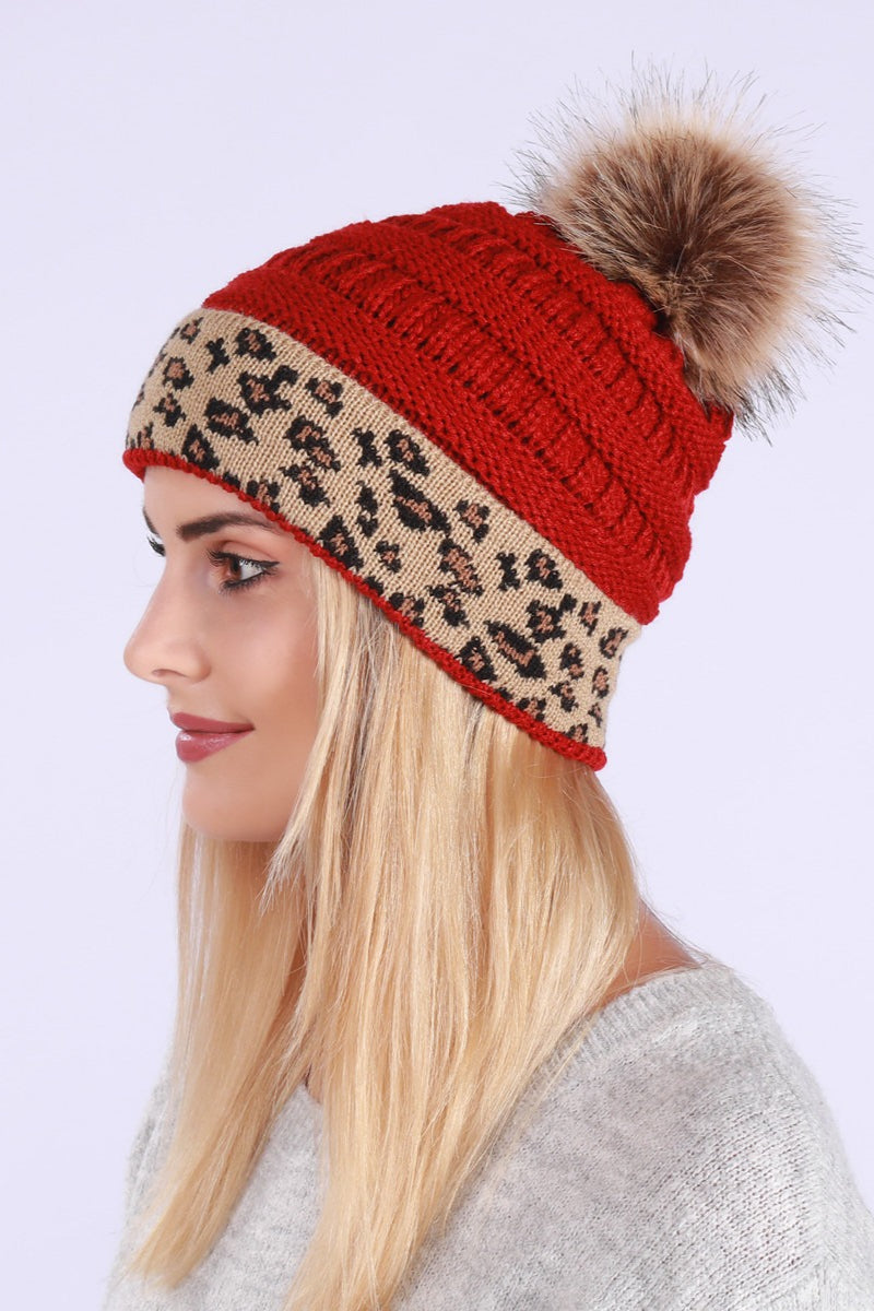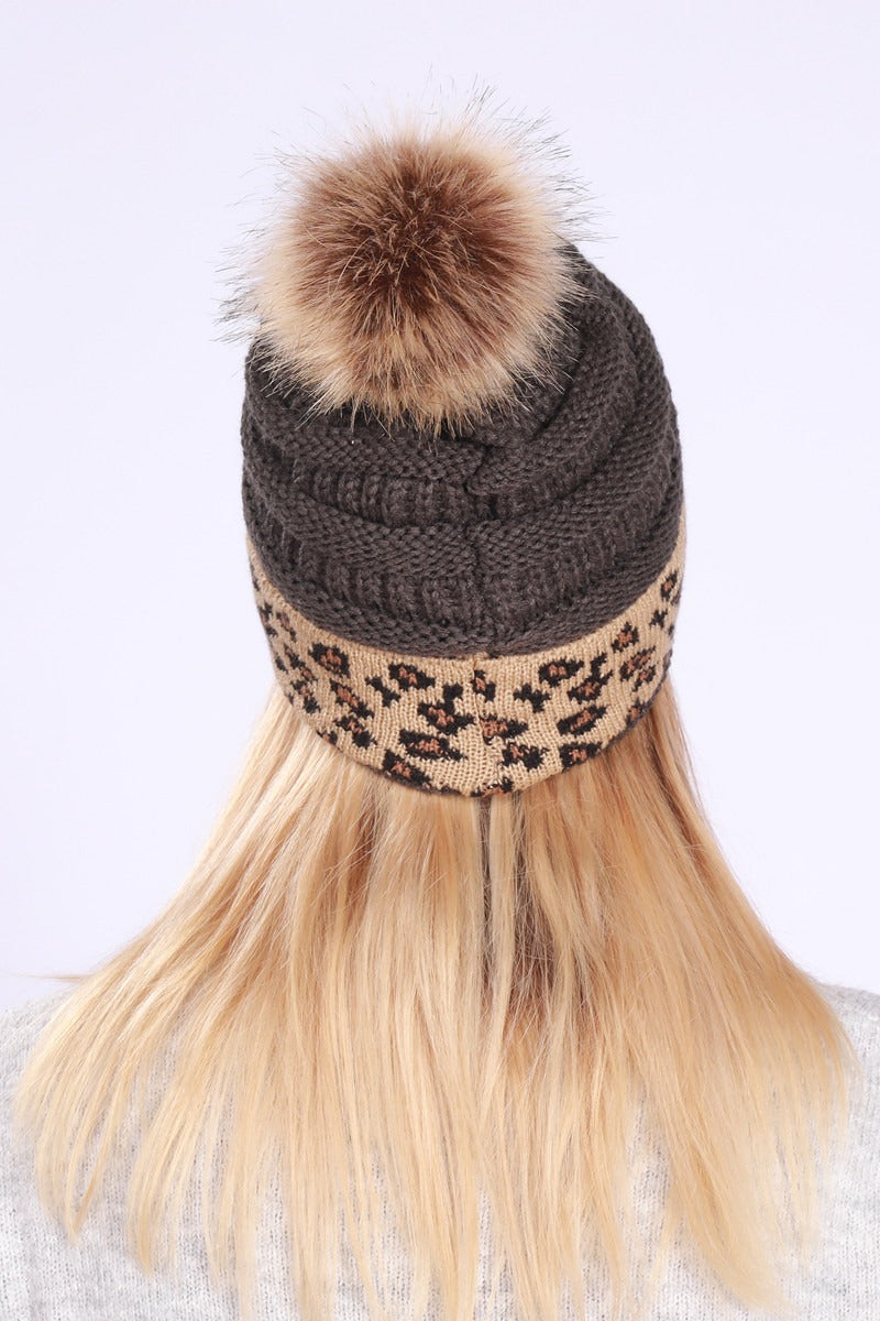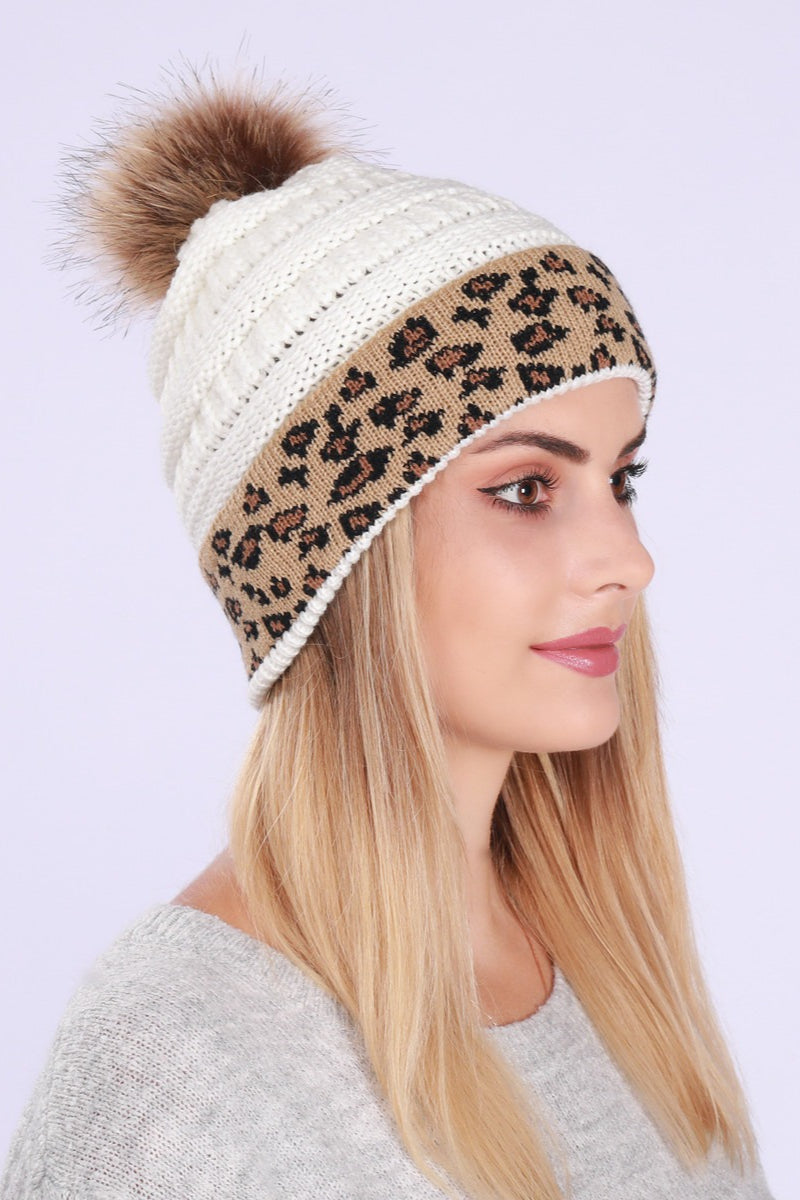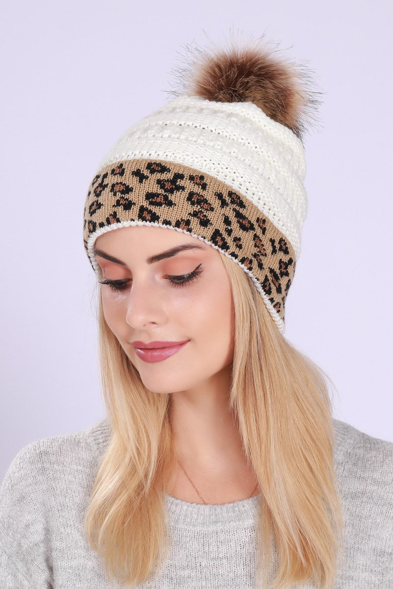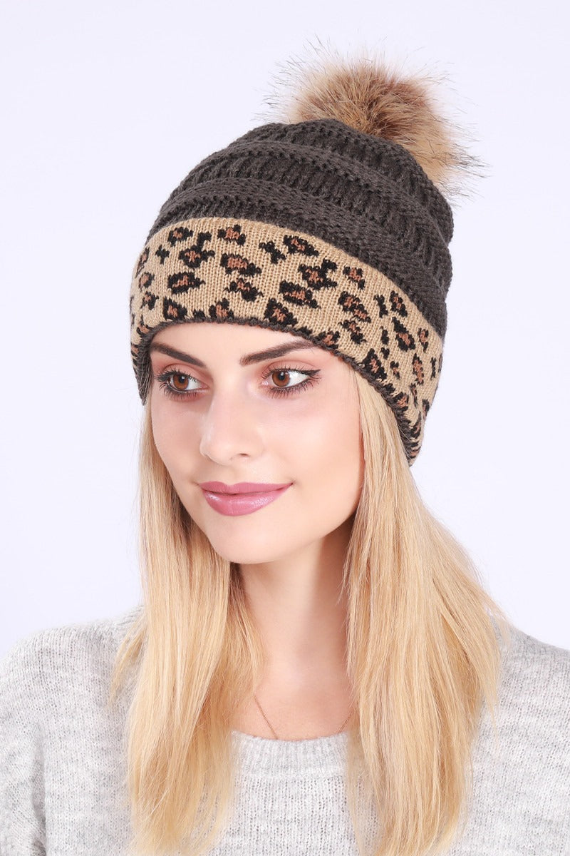 Leopard Print Slouchy Knit Beanie Hat