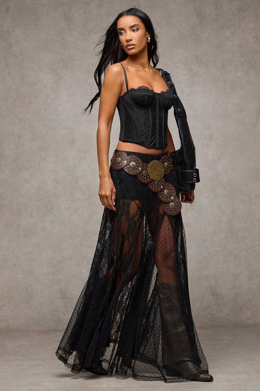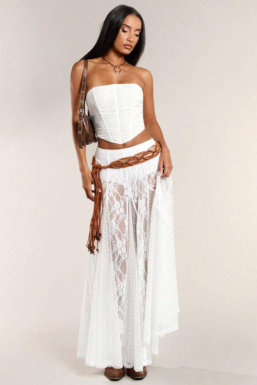 • Clothing Type: Circle Skirt • Skirt Length: Maxi • Composition: Polyester • Details: Patchwork, Lace