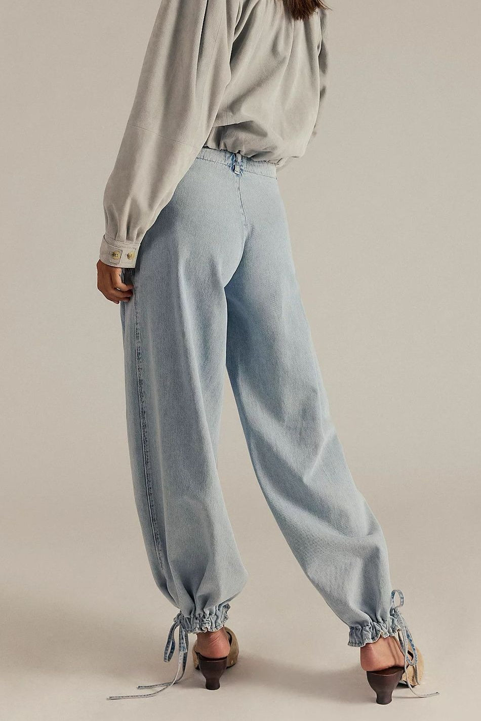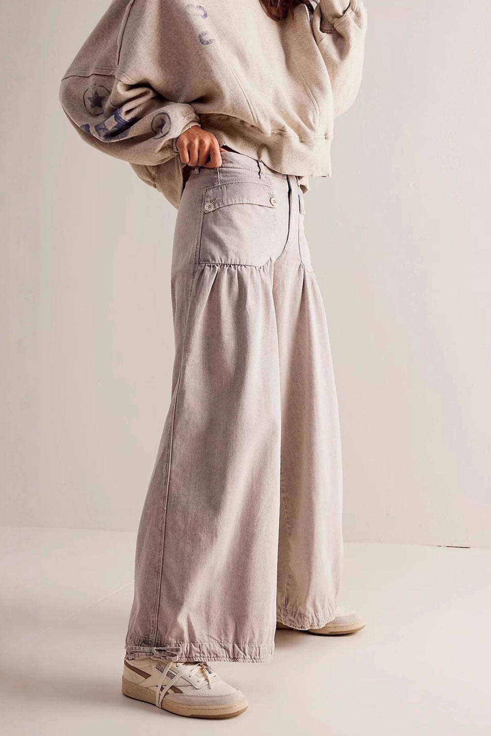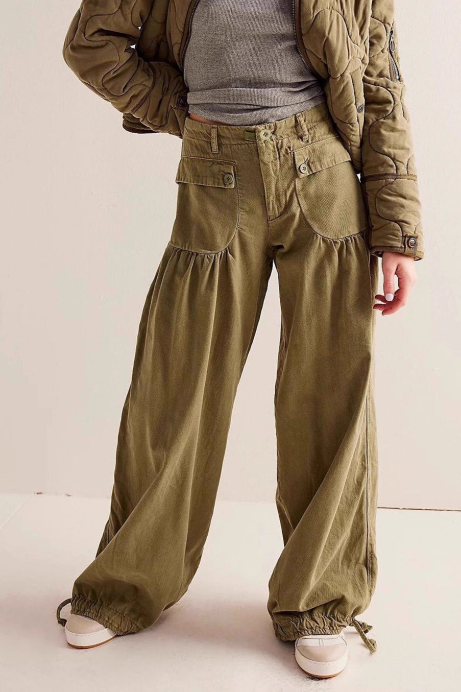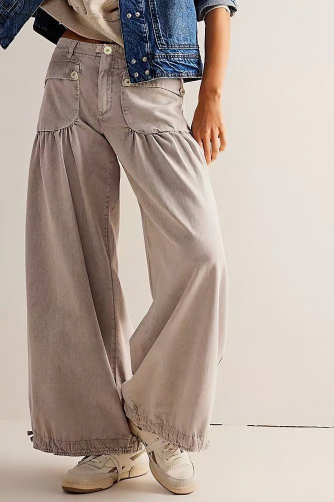 • Clothing Type: Straight Pants • Waist Type: Mid Waist • Details: Gathers • Composition: Cotton