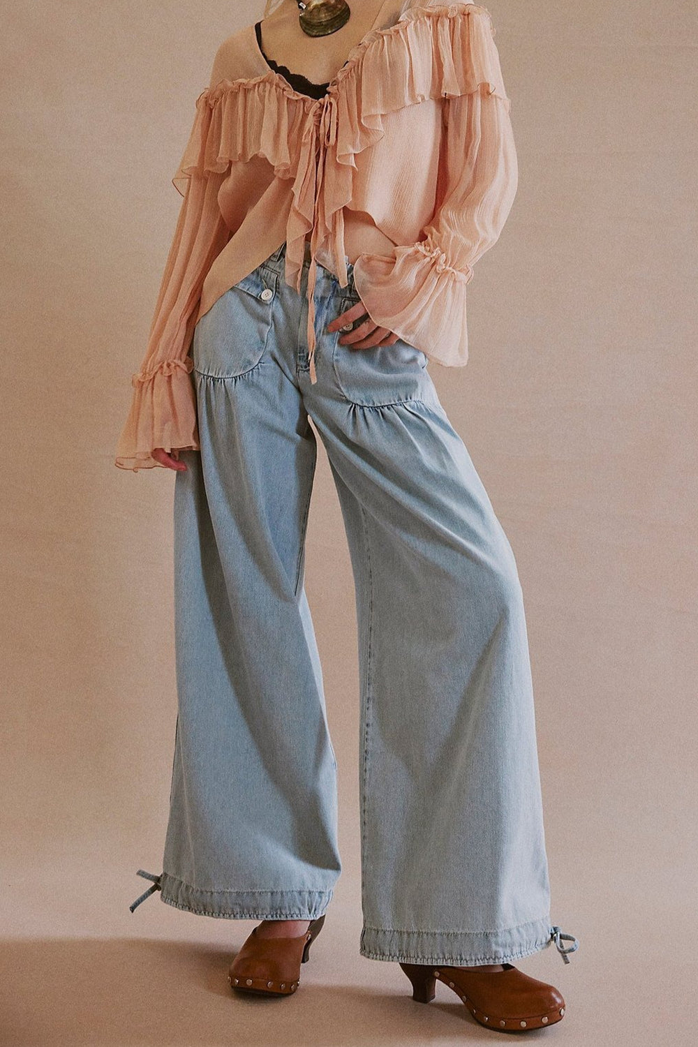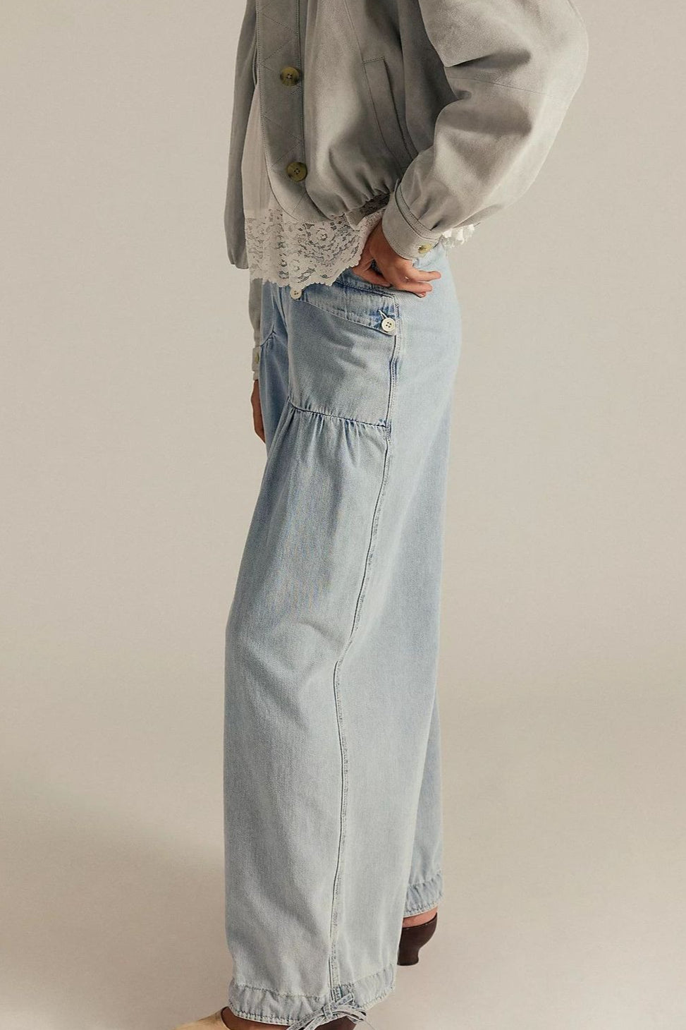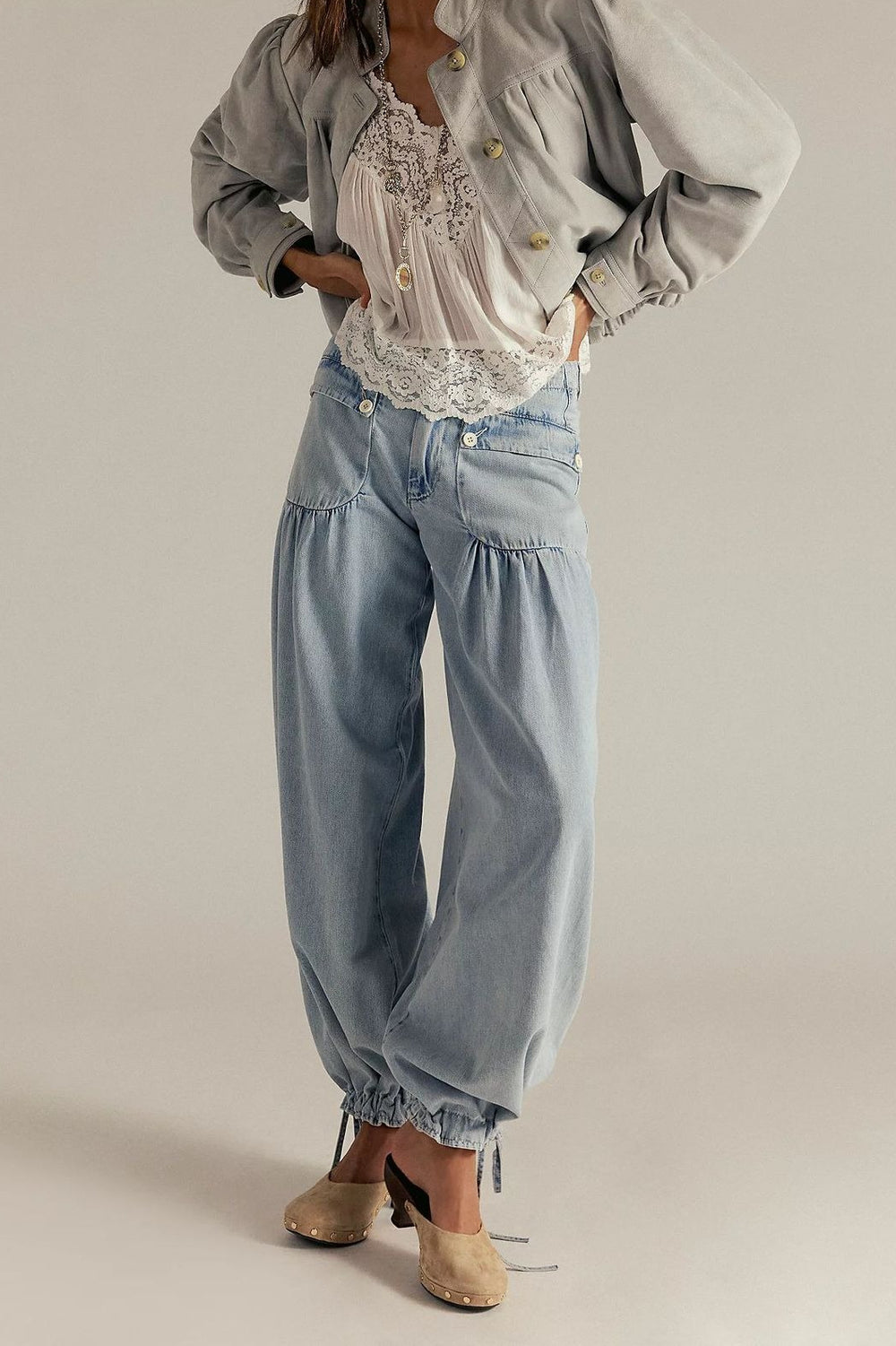 • Clothing Type: Straight Pants • Waist Type: Mid Waist • Details: Gathers • Composition: Cotton