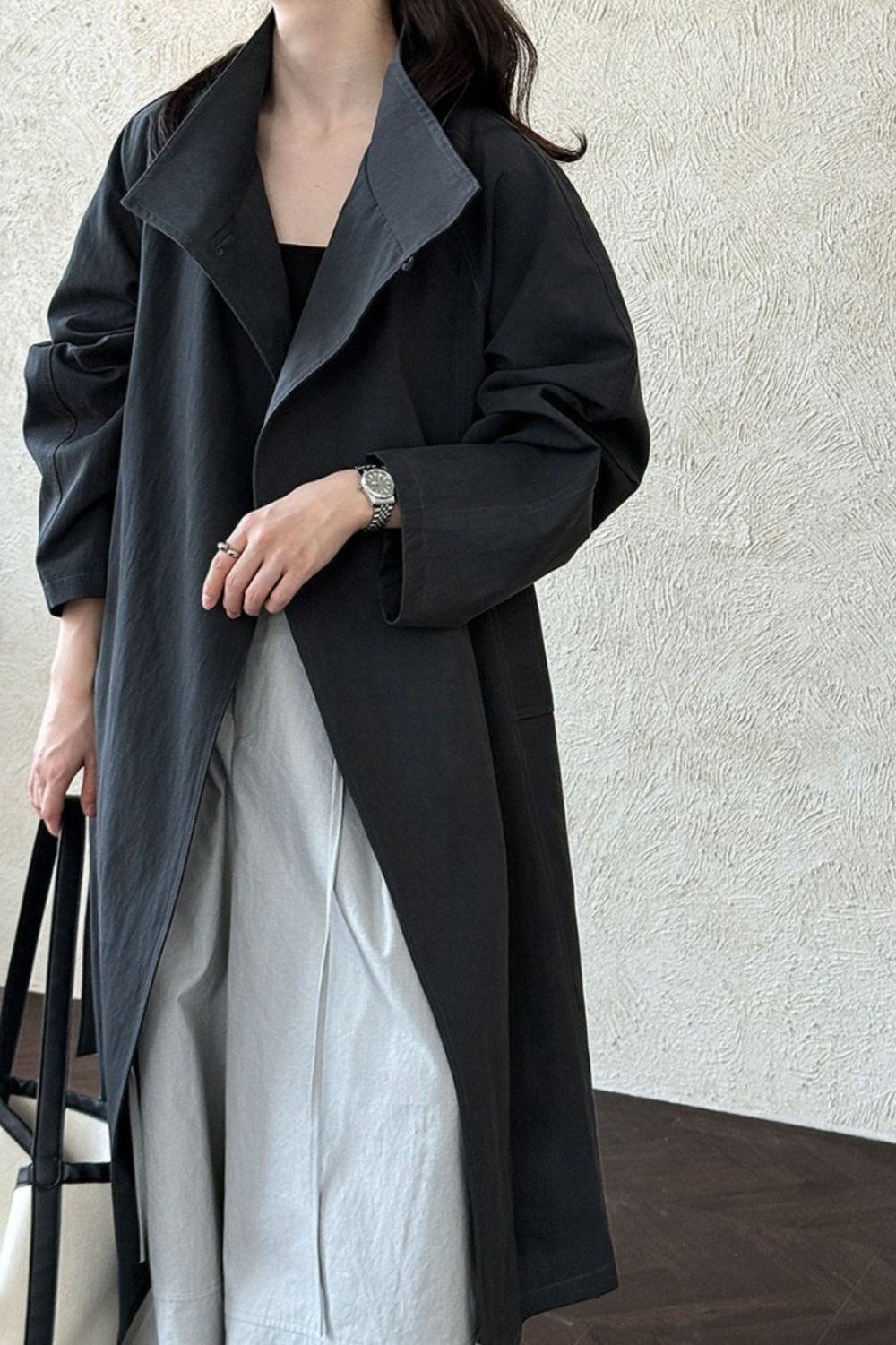 • Fit: Loose Fit • Neckline: Stand Collar • Sleeve Length: Long Sleeve • Composition: Cotton, Nylon