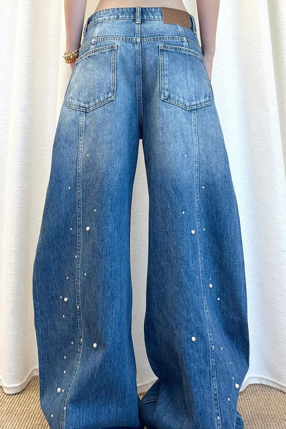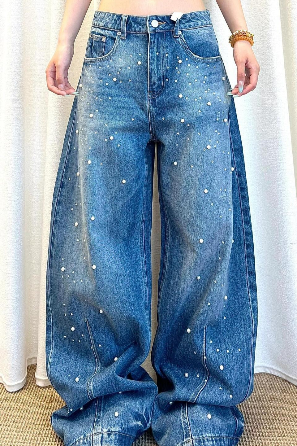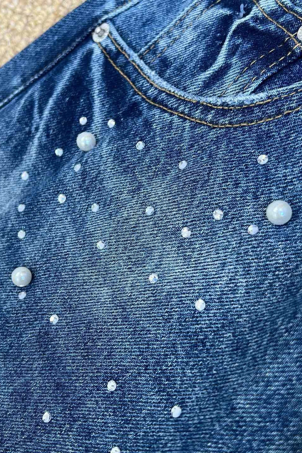 • Clothing Type: Straight Pants • Waist Type: High Waist • Details: Hot-fix Rhinestone, 3D Embellishment • Composition: Denim Cotton, Spandex