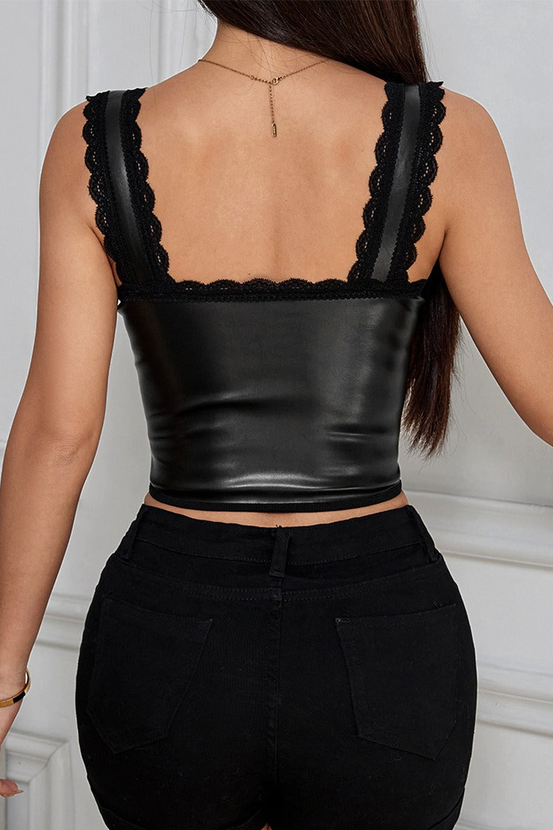 • Fit: Slim Fit • Details: Lace • Composition: Polyester, PU Leather • Elasticity: Slight Stretch