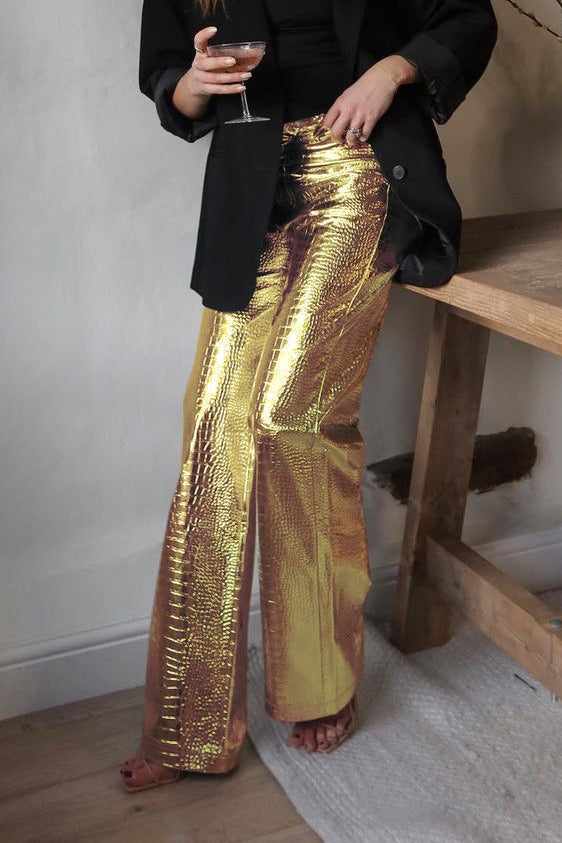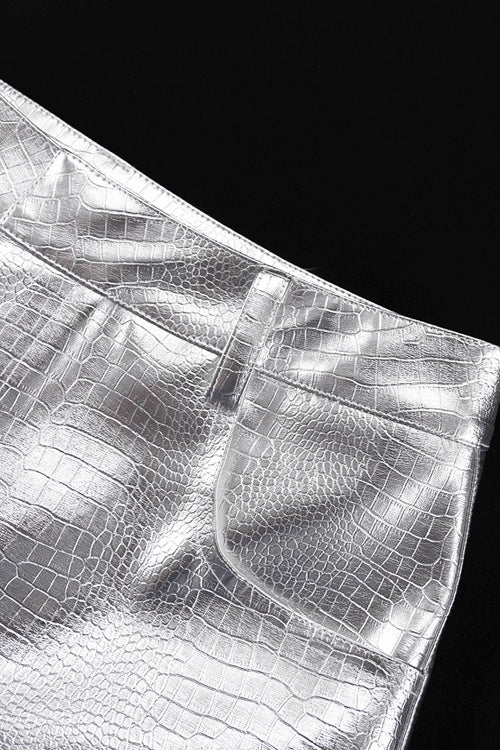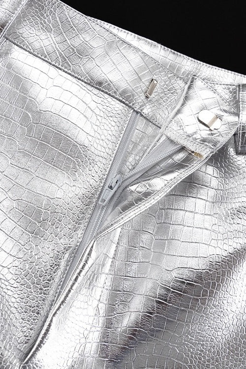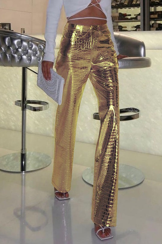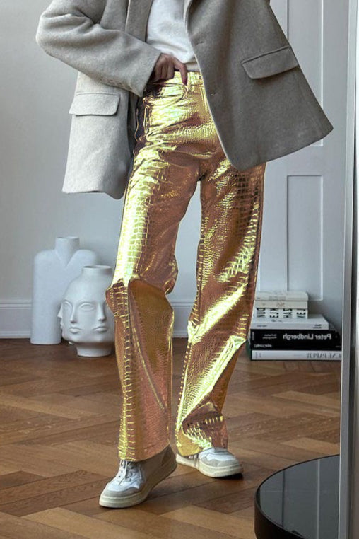 • Clothing Type: Straight Pants • Waist Type: High Waist • Details: Pockets • Composition: PU, Cotton