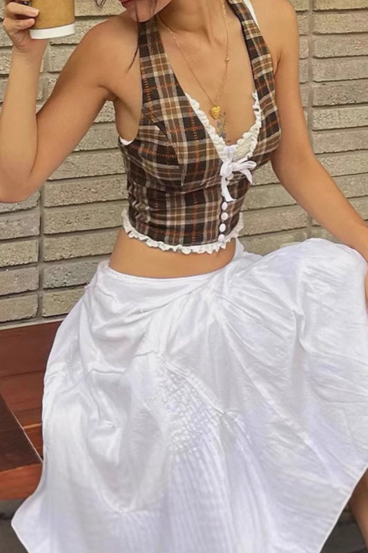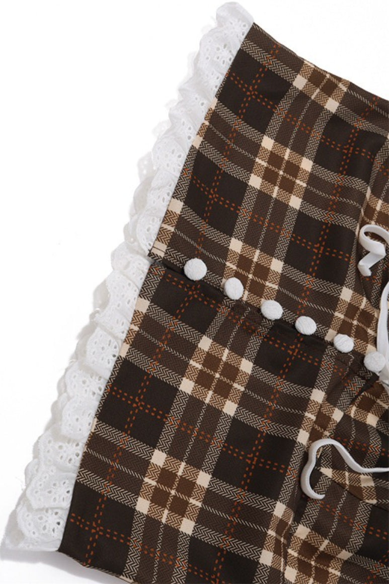 • Length: Short • Details: Cropped, Plaid • Composition: Polyester, Spandex