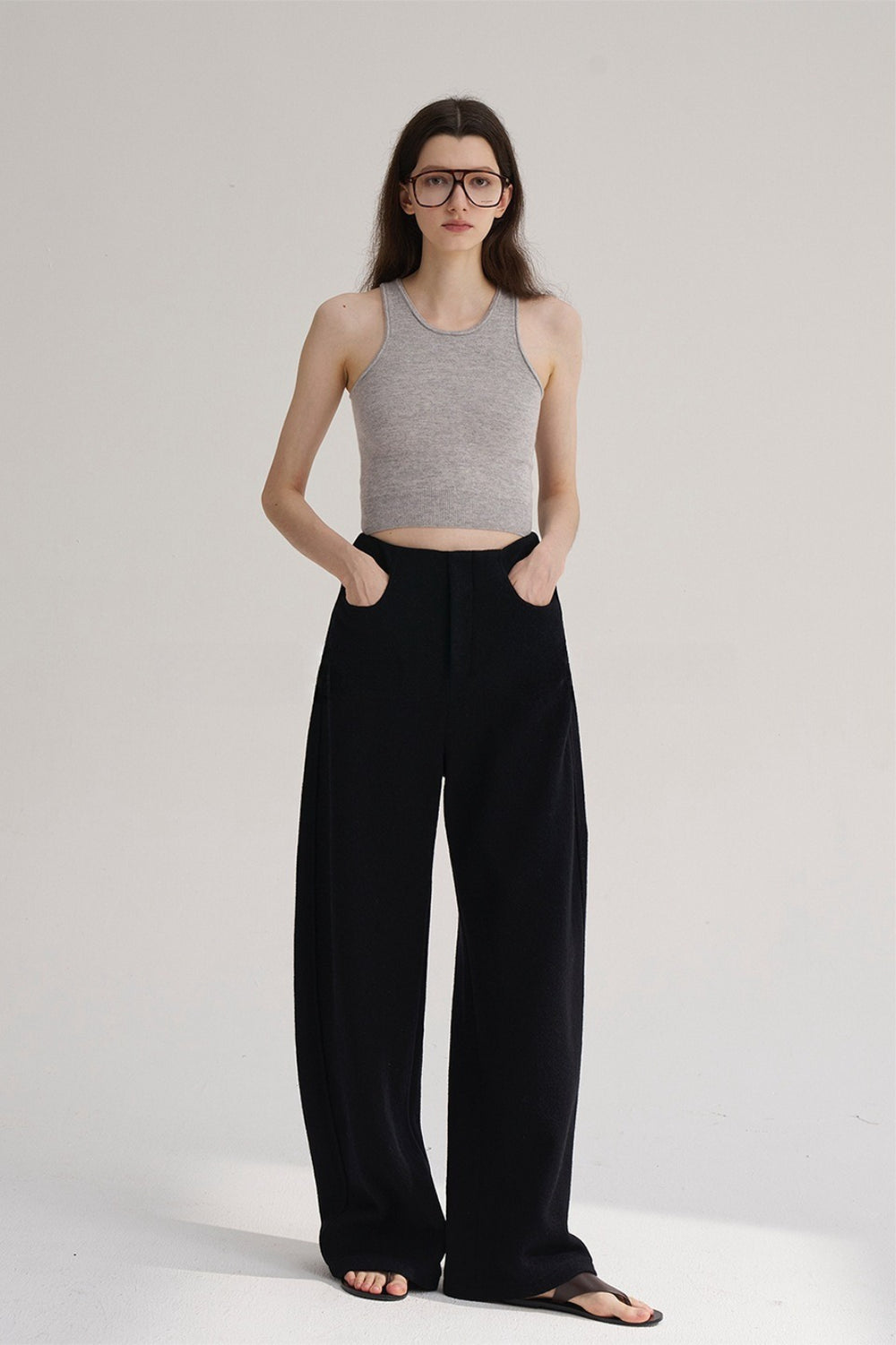 • Waist Type: Natural Waist • Clothing Type: Flared Pants • Composition: Wool, Spandex • Details: Solid Color, Pockets