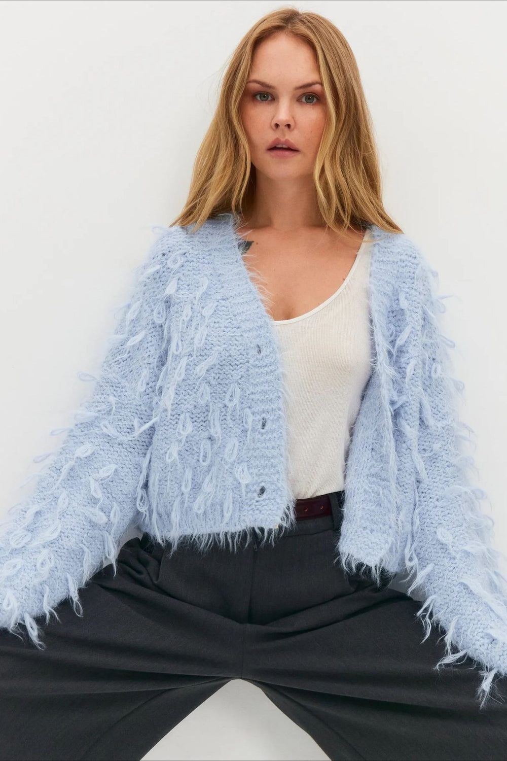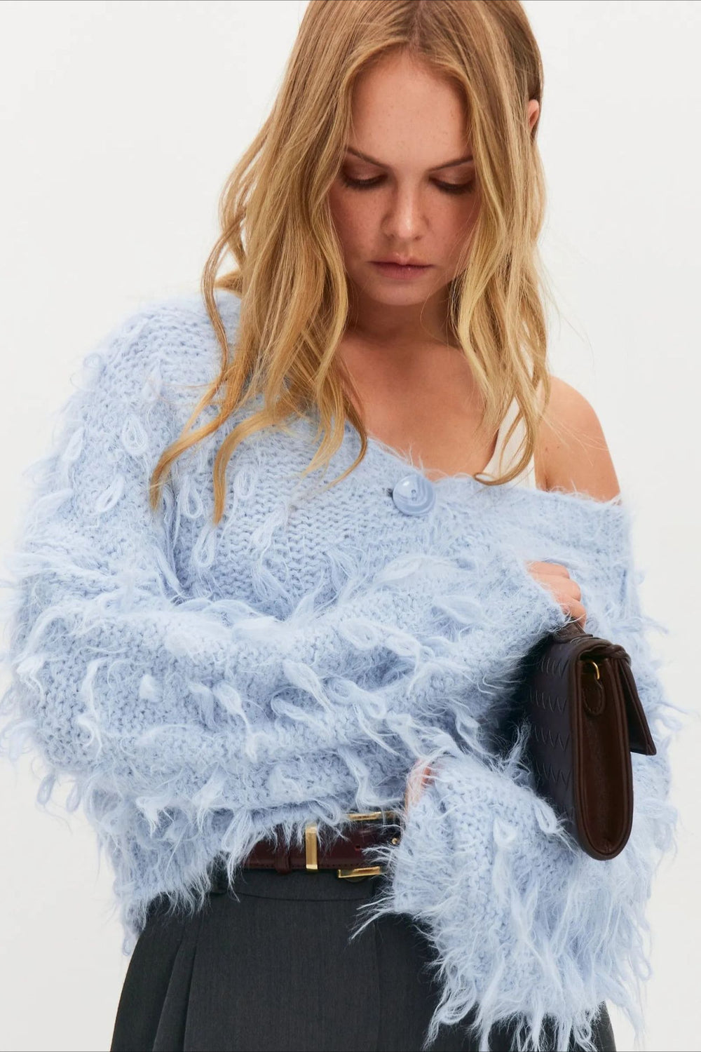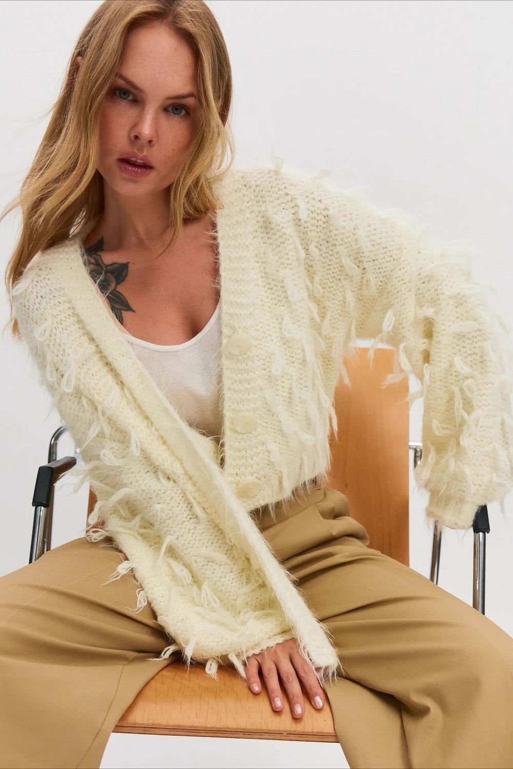 • Fit: Loose Fit • Neckline: V-Neck • Sleeve Type: Raglan Sleeve • Sleeve Length: Long Sleeve • Details: Tassels, Buttons, Ribbed • Composition: Acrylic, Polyester