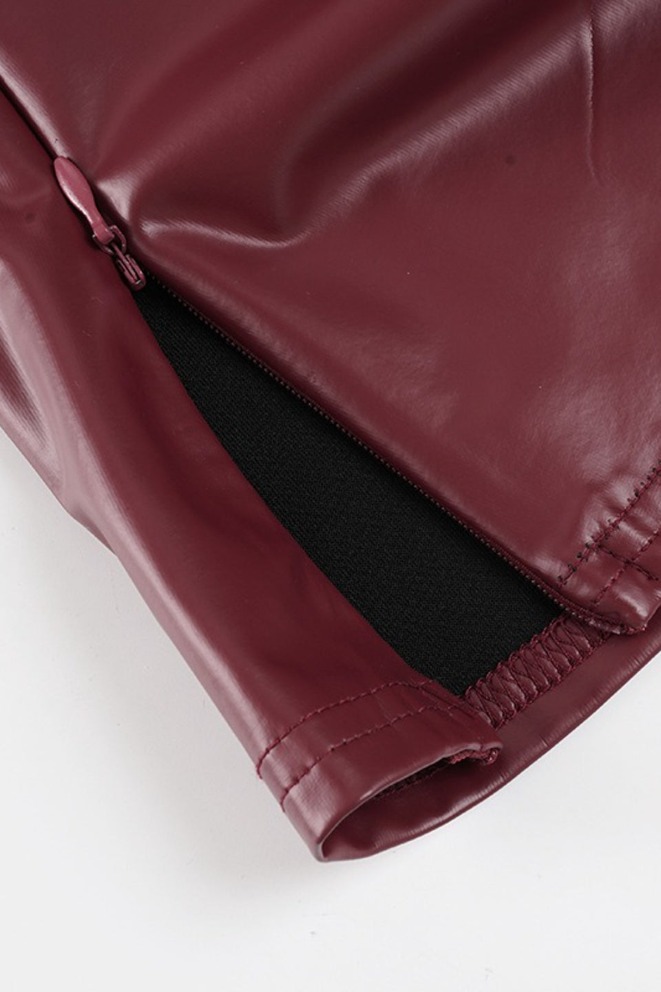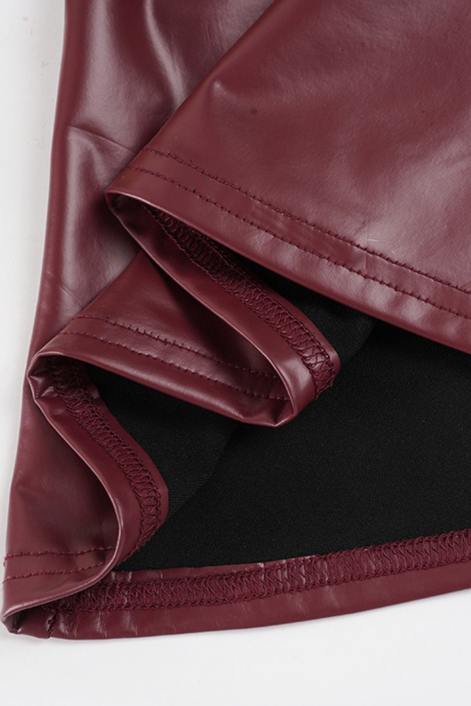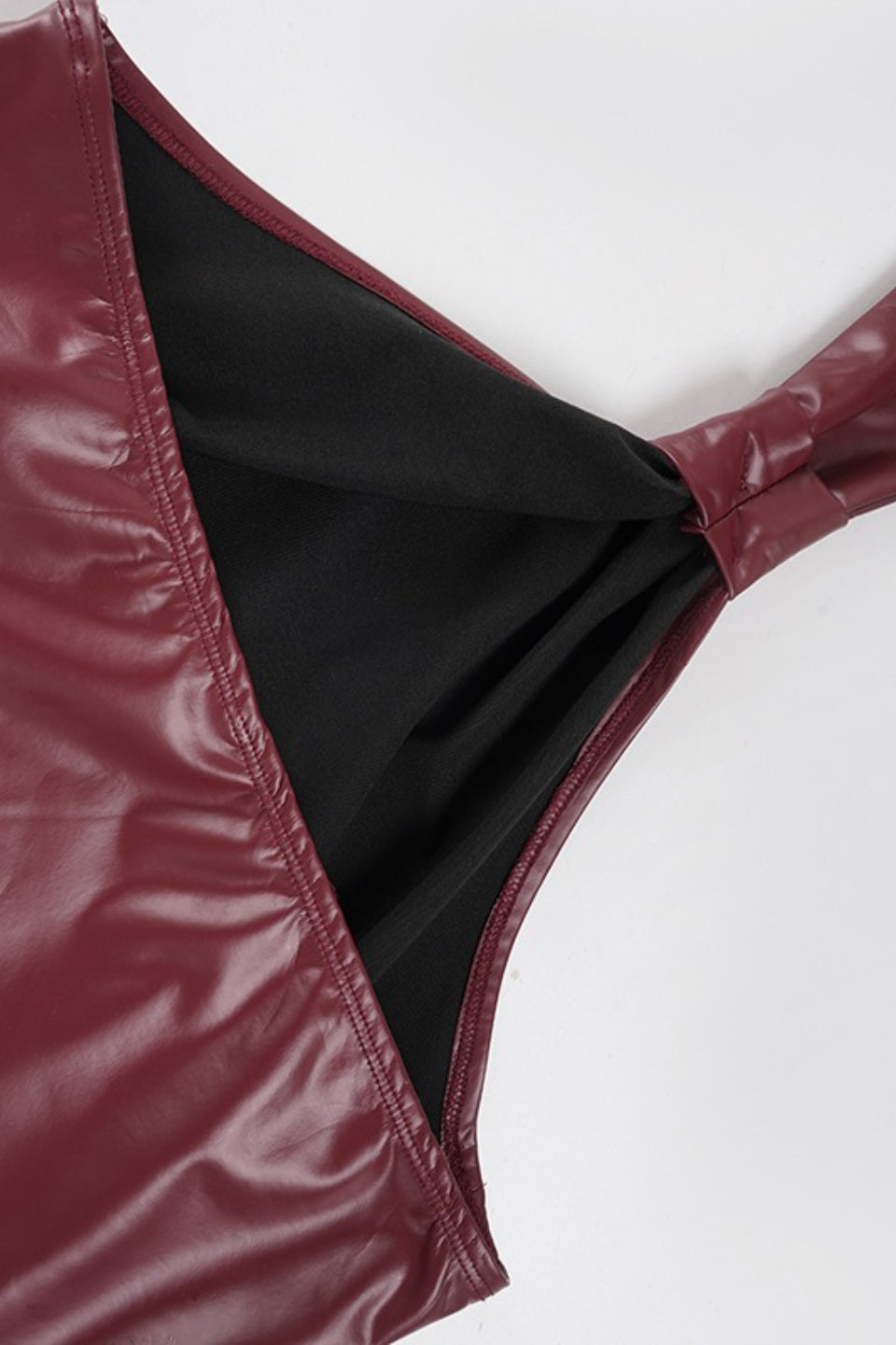 • Fit: Slim Fit • Neckline: Halter Neck • Details: Leather Patchwork • Composition: PU Leather • Elasticity: Slight Stretch