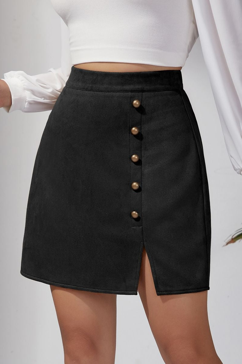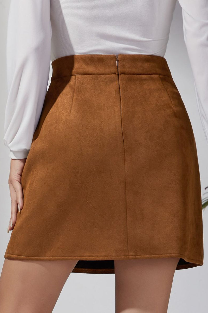 • Clothing Type: A-line Skirt • Dress Length: Mini • Composition: Suede • Details: Zipper