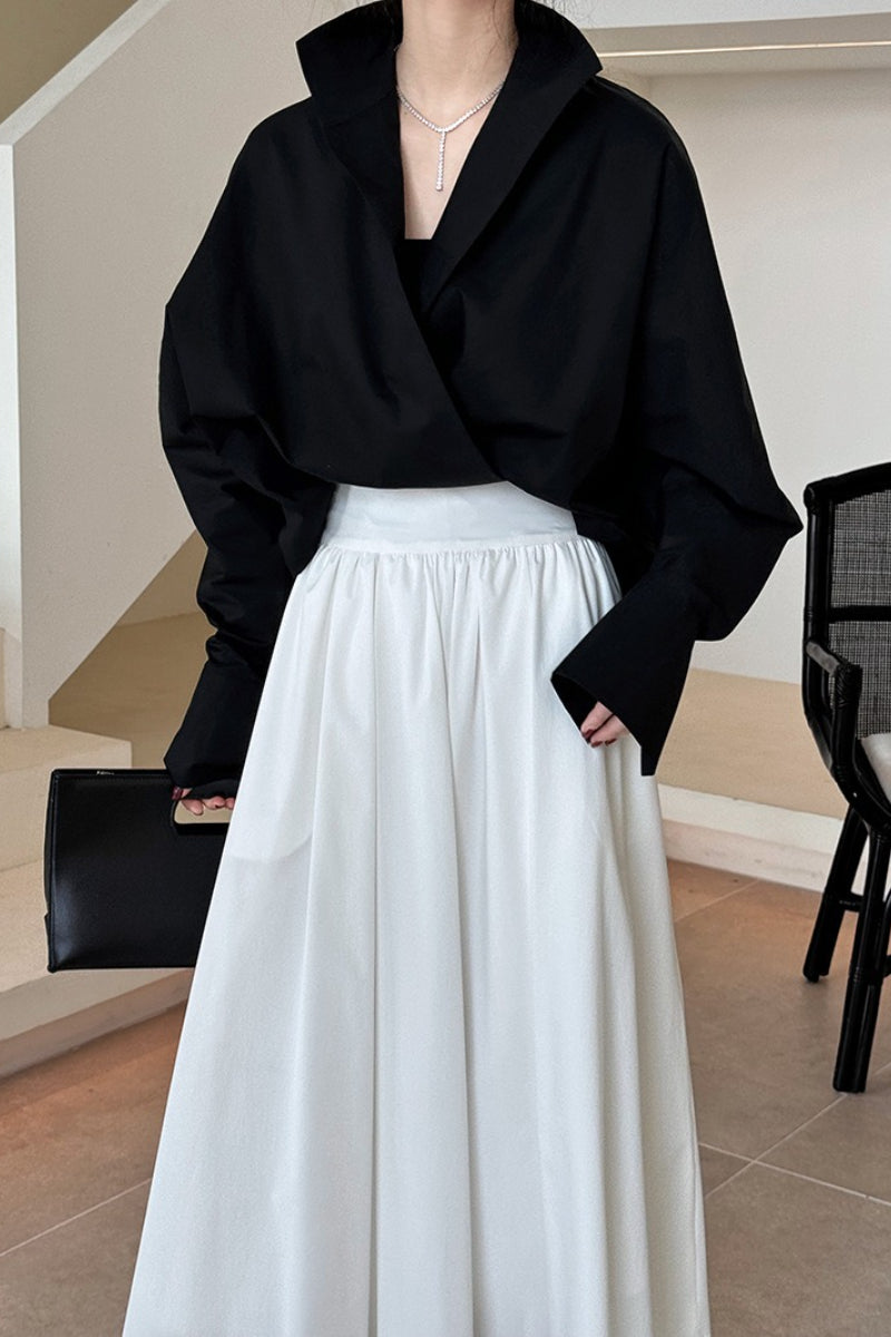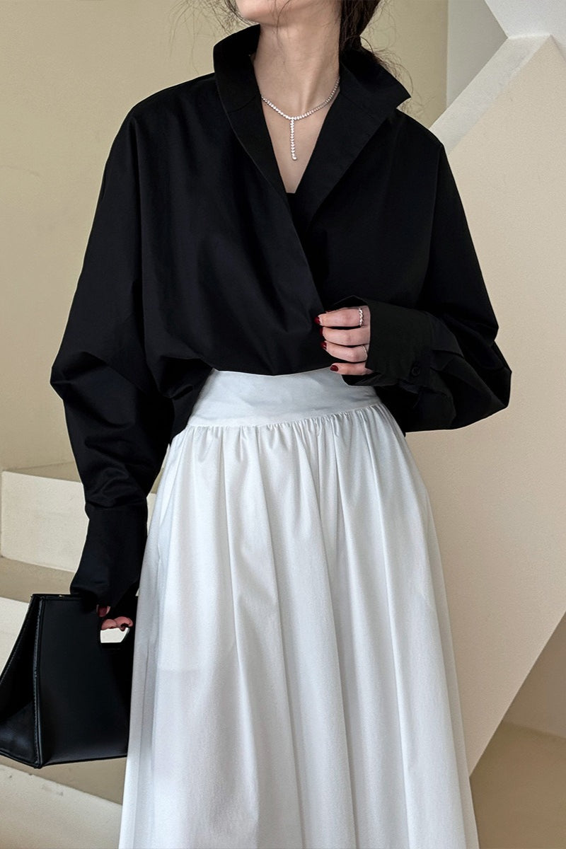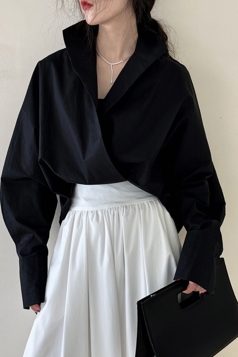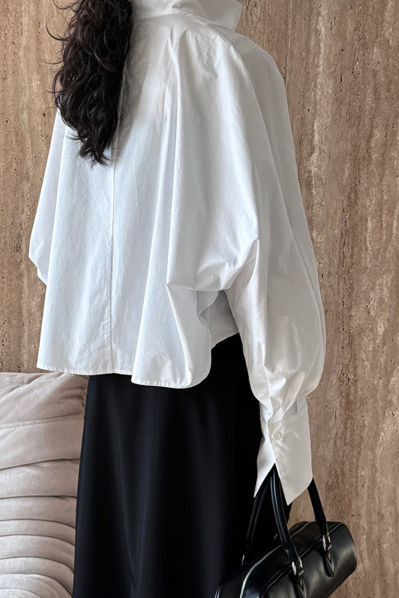• Fit: Loose Fit • Neckline: Stand Collar • Sleeve Length: Long Sleeve • Sleeve Type: Batwing Sleeve • Details: Stand Collar • Composition: Cotton