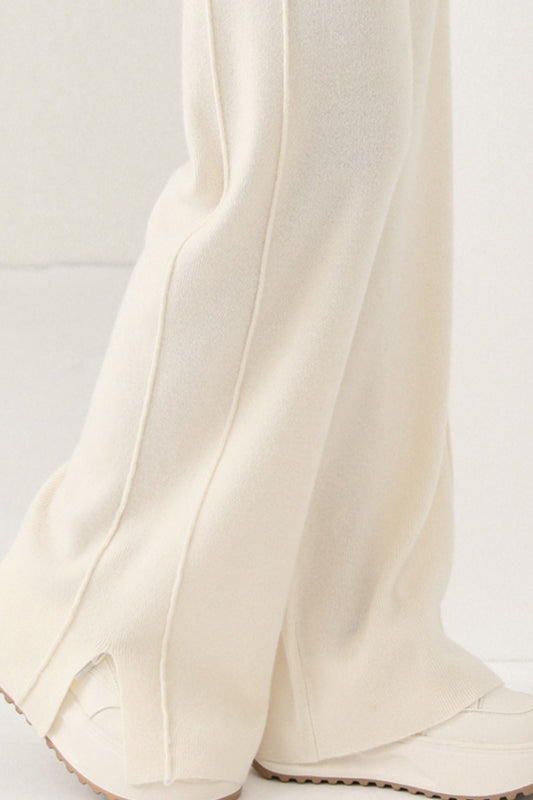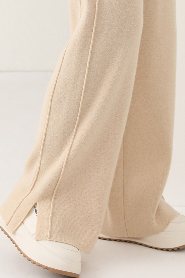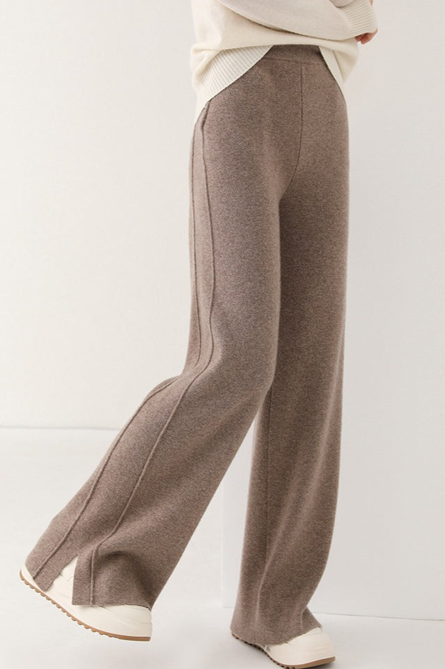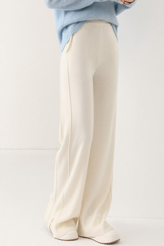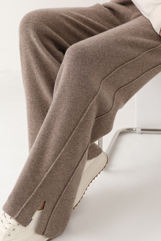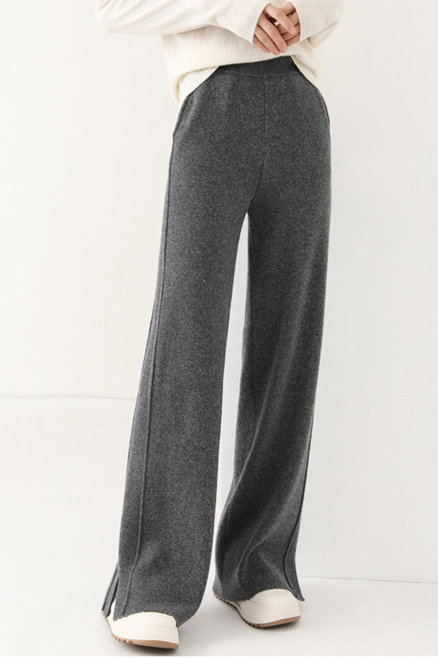 • Waist Type: Elastic Waist • Clothing Type: Straight Pants • Composition: Wool • Details: Solid Color