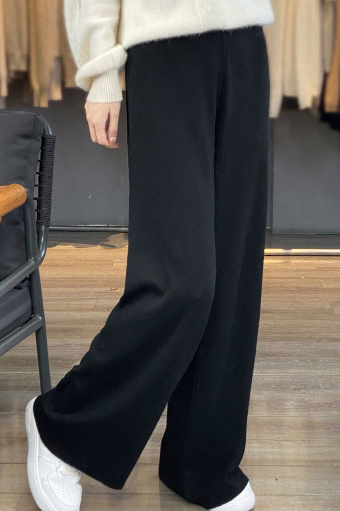 • Waist Type: Mid Waist • Clothing Type: Straight Pants • Composition: Wool • Details: Solid Color